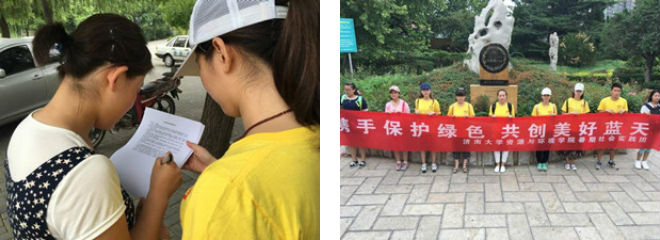 7月17日,济南大学资源与环境学院“绿之光”社会实践团的“三下乡”实践活动进行到尾声,志愿者们来到樊家窝村湿地公园附近村庄,对居住在湿地公园附近的村民开展水污染知识社会调查。