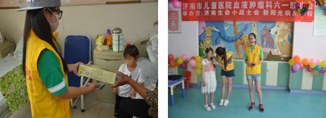 5月31日,资源与环境学院晨曦爱心服务队来到齐鲁儿童医院为血液肿瘤科的小朋友们送去六一儿童节节日祝福。