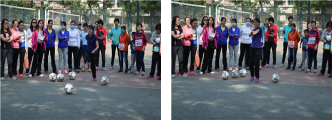 济南大学2016年田径运动会正在紧张有序地进行着,学校大操场内热闹非凡,整个校园处处洋溢着青春律动的年轻气息。4月29日下午三点,期待已久的教职工女子中年组足球射门比赛在轻松愉快的氛围中正式拉开帷幕。