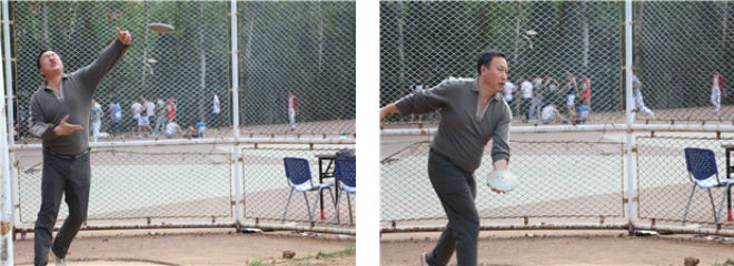 在工作人员的带领下,运动员们来到了铁饼比赛场地。比赛开始前,为了更好地在比赛中发挥,老师们进行了简单的热身运动。随着裁判员的一声令下,教工男子中年组铁饼决赛正式拉开序幕,各个学院参赛老师按照顺序出场。资源与环境学院王晓军老师出场时,学院观众在场下热烈欢呼,用整齐的口号和昂扬的激情为老师加油助威,王晓军老师在比赛中沉着冷静,稳定发挥,凭借全身的力量与娴熟的技巧竭尽全力将铁饼掷出,最终获得了济南大学田径运动会教职工男子中年组铁饼第一名的优异成绩。