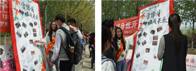 上午十点,校志联志愿者们及各学院负责人到达场地积极准备展览材料,有序布置活动场地。过往的同学们被精致的展览所吸引,纷纷驻足观看。其中,资源与环境学院开展的“学雷锋精神,展青春风采”主题系列活动汇总展主要包括照片展、书法展、手绘展、资料文献展四部分组成。主讲人向同学们介绍了学院近期举办的“世界水日”特色系列活动,植树节、环保教育以及志愿服务一条街等活动,以各种形式学习雷锋精神、传递正能量。大家纷纷表示,在今后会将雷锋精神内化于心,外化于行,落实在生活的点滴中。下午一点,持续了近三个小时的活动圆满结束。