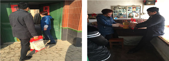 资源与环境学院家访小组第一分队由2014级辅导员付颖颖老师及学生干部党员代表组成。在初步了解陈同学的家庭情况后,付老师一行来到平度市同和镇白埠西华里村,为困难生家庭送去了年货及慰问金,并与陈同学的母亲进行了亲切交谈。付老师了解到家中有两位老人需要赡养,便关切地问道,“家里两位老人的身体状况怎么样,精神状态还好吗?”“孩子她奶奶身体还不错,就是老爷子,这天一冷,病就来。”随后,付老师向陈同学的母亲介绍了学校对困难生家庭的补助情况,并承诺说:“在国家政策的实施、学校的大力支持下,学院领导和老师会尽力在物质、精神上帮助孩子,把学生培养成才。”陈同学的母亲听完付老师的一席话后不停地说:“谢谢,谢谢。”陈同学也表示自己一定会努力学习、感恩生活。