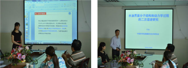上午九点半,讲座在资源与环境学院九教301正式开始,主讲人袁群惠亲切地向在座师生进行自我介绍。袁群惠研究员首先就“重金属离子传感与吸附”的研究原理进行简明扼要的讲解,稍后又介绍说明了目前研究工作的进展,同时也对此项研究的目的和意义发表了总结与展望。在场师生纷纷积极踊跃进行提问,袁研究员耐心解答并同在座各位展开热烈讨论。稍后,同样来自中科院理化研究所的干为研究员为大家作了题为《水油界面分子结构和动力学过程的二次谐波研究》的精彩报告。