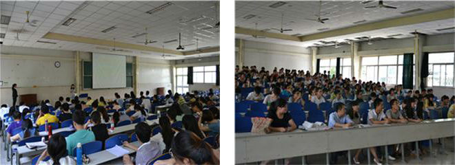 下午一点半,星硕自习室内人山人海,会议正式开始,首先由黄茜老师致开场词。黄老师不仅鼓励同学们正视考研、勇往直前,更对大家的未来发展寄予了厚望。接下来,六位受邀的2010级学长、学姐依次走上讲台,向2011级学弟学妹们分享他们的亲身经历、传授他们的考研经验。他们以自己的真实经历为例,不仅介绍了通过自身的考研学习所掌握的一些技巧,还剖析了此过程中他们的遗憾并提醒大家不要再错过一些细节。最后,2011级到场的同学们分别就自己目前所遇到的问题与学长学姐进行自由交流。