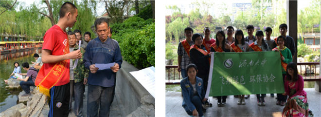 为了更好地倡导大家爱护泉水、保护水资源,2014年4月8日,济南大学资源与环境学院的同学们来到护城河——黑虎泉沿线举行“节水保泉”倡议活动,济南大学飞翔绿色环保协会的同学们积极参加了此次活动。