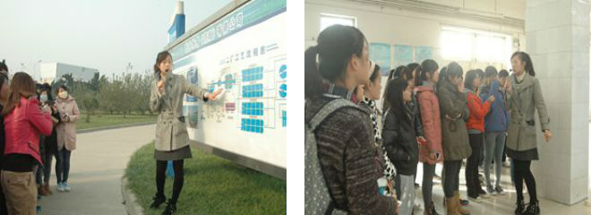 同学们上午8点在校门口集合,在老师的带领下到达位于济南的光大水务有限公司。同学们被分成俩组,由水务公司的相关负责人带领着同学们参观污水治理的流程,首先,负责人向同学们大体介绍了工艺流程。在了解大概的流程之后,同学们顺着污水的处理路线,从粗格栅和进水汞房,到配水井,终沉池,到最后的出水生物指示池,每一步的流程都有相关人员专业详细的介绍,解答同学们的各种疑问。负责人的介绍让同学们清楚的了解污水处理的各项流程,最后,由水厂负责人总结此次污水治理厂参观的大体情况,并给予学生们真挚的鼓励。