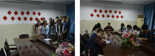 晚上7时,会议正式开始,首先由学生党员代表发言,向大家详细介绍了“四个全面”的内容及其重要意义,同时,询问在场各位对“四个全面”方针的理解。在场的学生党员踊跃参与,通过联系实际和自身的情况阐述自己对于此项方针的认识,他们的发言内容精彩,对方针的意义理解深刻。随后,学生党员代表指出,学生党员应充分认识到自身的权利和义务,做到密切联系群众、作好模范带头作用,把作为党员的职能落到实处。会议最后,学生党员代表补充说明了学院下一步关于学习参观、志愿服务的党支部活动计划,希望各党员积极配合,把工作做好。