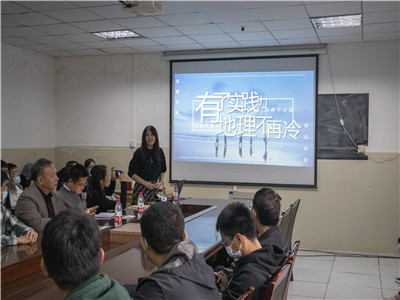 讲座开始,王老师首先向大家介绍燕静校友所获荣誉情况。然后,张良红副书记致辞,对燕老师百忙之中回家表示感谢,同时对多年来燕老师所在工作单位对于学院教学工作的支持表示感谢。随后,燕老师以“有了实践力,地理不再冷”为题从什么是地理、什么是地理教育、教与学的关系等方面开始演讲。在演讲的过程中燕老师结合教学经验和工作中的课题研究经历向同学们讲述了教与学的关系,希望地理教育能够实现能力向情感的转变。明确学生需求,培养学生的地理实践力。同时燕老师依托教学实际案例向大家讲解了什么是地理实践力。随后,地理系学生代表展示了一堂微课,燕老师给予点评。最后,宋鹏老师做总结讲话,对燕老师精彩的演讲和点评感谢,同时希望能够加强与燕老师的合作。