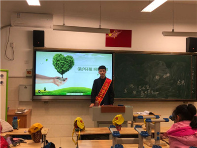 首先,志愿者们分析我们的生活背景:一个快速发展、人民物质生活水平显著提高的时代,但是在这背后,我们的环境正在面临着更加严重的挑战。紧接着志愿者们浅谈环境的现状,我国面临的环境污染主要有三大方面:一、大气污染,主要污染物为氨氮、二氧化硫、氮氧化合物。二、水体污染,其包括工业污染、生活用水污染、农业污染。三、土壤污染,由于人类的乱砍乱伐,不加控制的开采从而使植被破坏,水土流失。这三大类环境污然,污染范围广、污染程度高甚至堪比历史上最严重等。最后,志愿者们介绍保护环境做法:一、使用公共交通工具或者步行或者骑自行车,尽量不用私家车量减少二氧化碳的排放。二、纸张重复利用,减少砍伐树木。三、做好垃圾分类,减少生活垃圾。四、从我做起,减少噪音污染。