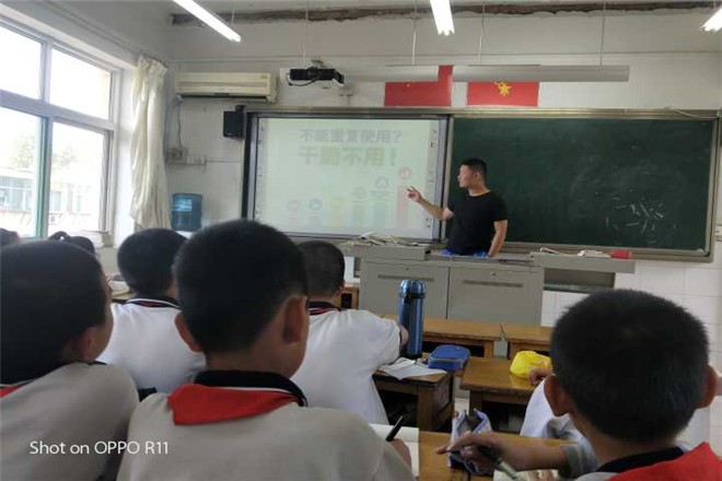 下午三点半,炽热阳光正普照着大地,炎热的天气并没有阻挡住志愿者们的热情。志愿者们在规定的时间里到达新西门,随后乘车到南辛庄小学。活动伊始,志愿者详细的给小朋友们讲解了世界环境日的概念和它的由来,同时提问小朋友们在自己平常生活中应该怎样去做。各个小朋友都踊跃回答,其中一个小朋友表示可以拒绝一次性购物袋、做好废旧电池的回收和水资源的合理利用。随后,志愿者们给小朋友展示了在海边沙滩上捡到的垃圾图片,同时志愿者们表示不少海洋生物的胃里存有不能消化的垃圾以致于生物死亡,再次给小朋友们敲响了保护环境的警钟。最后,志愿者们着重讲解了世界环境日的重要意义,强调小朋友们注意保护环境、保护人类文明。