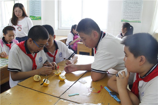 下午四点许,志愿者们到达南辛庄小学,开展主题活动。活动伊始,志愿者以废旧电池的危害发问,引用科学调查的数据,向小朋友们介绍了清洁能源的相关内容,引导小朋友积极思考,希望小朋友们在提出问题的基础上可以学会解决问题并增强实践能力。小朋友们踊跃发言,主动拓展思路,现场气氛热烈。继而志愿者们为小朋友普及了垃圾分类、酸雨的危害等知识,鼓励小朋友动手制作环保飞行棋、扑克牌。小朋友和志愿者进行互动,志愿者耐心阐述环保理念及其相关。小朋友们在志愿者们的讲解下,了解相关环保知识,懂得如何科学用水、实现水资源的最大利用化,学会制作简单的净水装置,提高了动手与协作能力。
