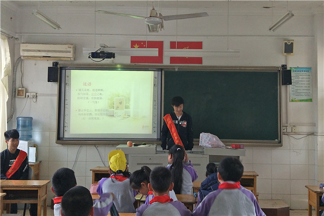 4月3日,资源与环境学院青年志愿者协会的志愿者们走进南辛庄小学,开展“绿色生活,抵制雾霾”的宣传活动。