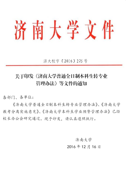 20170326济大校字〔2016〕225号-济南大学本科生学业预警管理办法