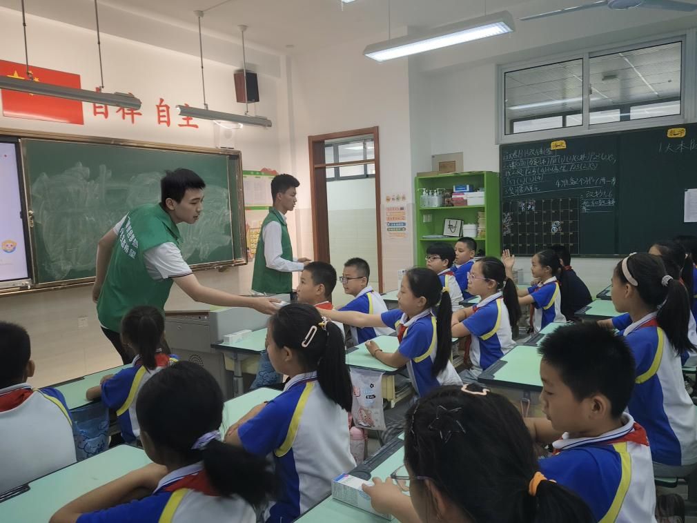活动尾声,宣讲团向每位同学发放了精心准备的小奖励,这些奖励不仅是对孩子们积极参与的肯定,更是希望他们能将课堂所学牢记心中。宣讲团成员鼓励大家将在课堂上学习到的环保知识融入到日常的生活中,积极落实节约用水、爱护环境等举措。比如,在日常生活中随手关闭水龙头,节约每一滴水;不随手乱扔垃圾,爱护身边的环境。