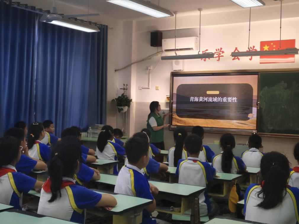 在问答过程中,孩子们不仅积极回答问题,还主动提出了许多有趣的问题,如“黄河源头的水是从哪里来的?”“我们能为保护黄河做些什么?”宣讲团成员和志愿者们都一一进行了详细的解答,让孩子们对青海黄河流域有了更深入的认识。互动问答结束时,孩子们纷纷表示,这次宣讲让他们知道了青海黄河流域不仅是一个美丽的地方,更是我们生态安全的重要保障,他们在心中种下了爱护环境、保护黄河的种子。