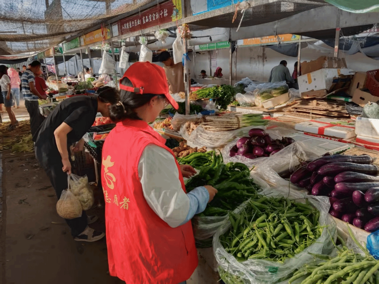 为进一步了解乡村经济发展和村民生活状况,团队成员与村委会工作人员来到乡村集市,对村民摊位进行调查。团队成员与摊主亲切交流,询问商品来源、销售情况以及经营中遇到的困难等,团队成员不仅收集到了第一手的基层经济数据,更感受到了村民们勤劳质朴的生活态度。针对部分摊主提出的问题,团队成员认真记录并及时反馈给村委会,助力问题解决。