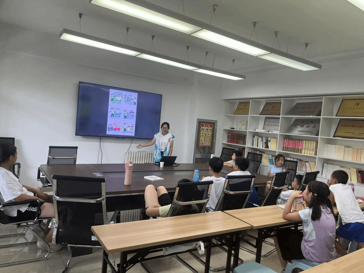 活动初始,实践团成员与社区管理人员对接并开展筹备工作,共同明确活动整体流程与具体分工,围绕安全教育讲座的内容设计、互动环节等细节展开研讨,为实践活动的开展奠定了基础。随后,团队面向社区小学生开展防溺水和交通安全暑期安全教育讲座,通过案例讲解和互动问答环节,普及防溺水自救方法与交通安全规则。此次活动增强了社区小学生的安全防范意识,帮助他们掌握了基本的安全知识与技能。讲座结束后,团队成员向小学生发放安全知识手册,巩固学习成果。