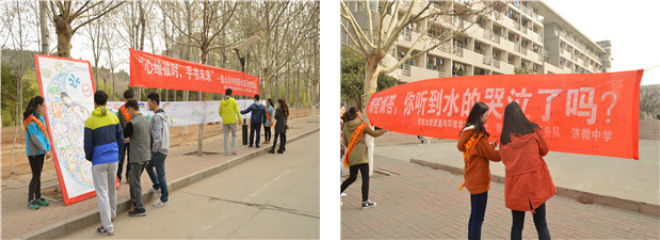 为了宣传世界水日,增强学生的节水意识,2015年3月22日,资源与环境学院在八食广场举办了世界水日成果展。此次活动由资源与环境学院团委主办,资源与环境学院学生会、济微中学附属小学承办。
