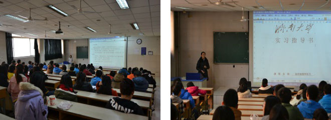 会议首先由解伏菊老师对此次实习提出相关的目的和要求,并强调了纪律、安全等方面的问题,提醒同学们在实习过程中要确保人身安全。接下来,刘展宏老师为同学们详细介绍了整个实习活动的安排和最终的成绩评定细则,并要求同学们要端正态度、团结合作,认真对待实习工作,在实践中实现自我发展。最后,各班班委落实相关任务,会议结束。