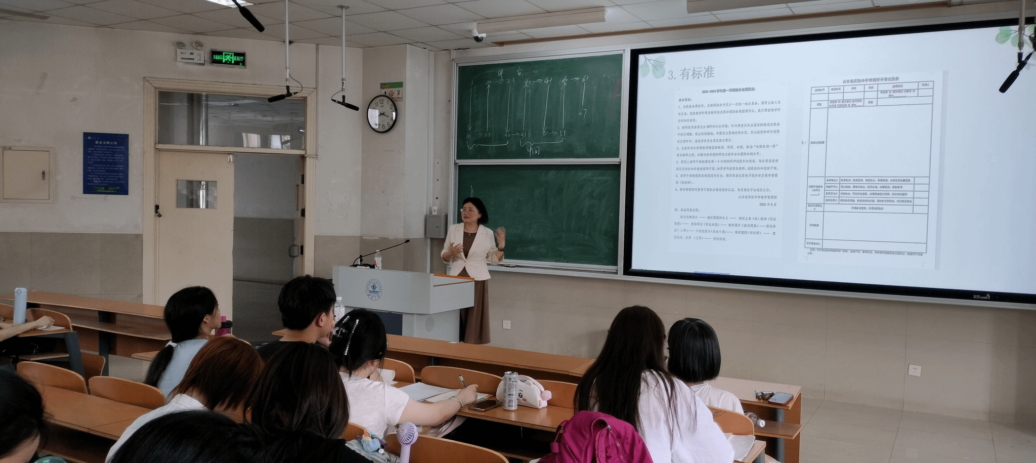二位老师围绕班主任管理与地理教师专业素质培养两大方面内容展开深入介绍,根据理论知识与自身教育经历相结合,传授师范生教育经验,促进师范生全面发展。满霄老师就班主任管理,分享其独特的班级管理理念,详细介绍了班级管理制度的建立与执行,强调要给予学生个性化的关爱与引导,帮助他们树立正确的人生观和价值观,并着重讲解了家校合作在班级管理中的作用与重要性。武彩老师就地理教师专业素养储备开展演讲,鼓励师范生争做“四有”好老师,夯实理论知识学习,追求教育理想,做到有理想信念、有道德情操、有扎实学识、有仁爱之心,强调了作为一名优秀的地理教师应当具有的多项品质,并为同学们分享了多项有关地理教学的方式技巧。